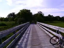 The Glacial Drumlin State Trail is a multipurpose rail trail in the U.S. State of Wisconsin. It stretches 52 miles (84 km) from Waukesha (near Milwaukee) to Cottage Grove (near Madison).[1] The trail travels through or near the Wisconsin communities of Cottage Grove, Deerfield, London, Lake Mills, Jefferson, Helenville, Sullivan, Dousman, Genesee, Wales, and Waukesha.[2] In Lake Mills, it crosses Rock Lake on one of its many old railroad bridges. The trail was opened in 1986 and follows the old Chicago and North Western Railway (C&NW) Madison–Milwaukee mainline.[3]