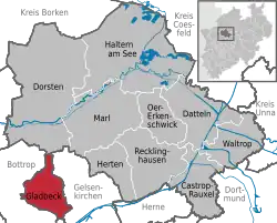 Location of Gladbeck within Recklinghausen district ![]() | |