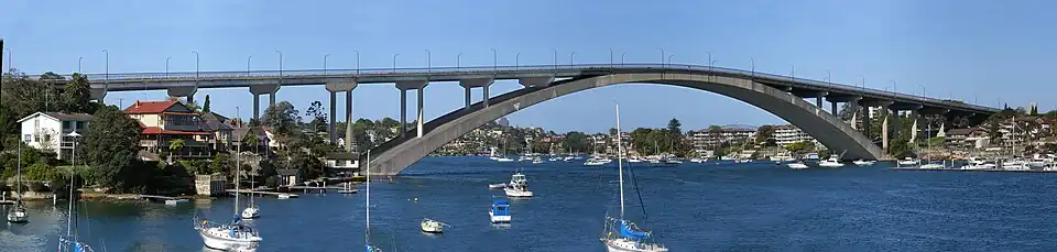 15. ^ "Gladesville Bridge". New South Wales State Heritage Register. Department of Planning & Environment. H01935. Retrieved 18 February 2020. Text is licensed by State of New South Wales (Department of Planning and Environment) under CC BY 4.0 licence.