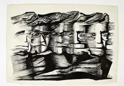 In 1982, Triana began work on a series of drawings in black ink of faces in various states of distortion and transformation. Triana met Reinaldo Arenas at a conference on his writing at the New York Public Library in 1986. Shortly after their meeting, Arenas visited Triana's studio and selected ten drawings and five paintings, composing a brief poetic accompaniment for each piece. Triana and Arena's collaborative works were first exhibited in March 1988 as Transformation and Dynamics Through Motion at the Cuban Museum of Art and Culture in Miami.[8] The exhibition was retitled Confluencias, and had a second showing in 2003 in Cádiz, Spain.[9] Confluencias was exhibited an additional four times between 2003-2006 in Mexico.