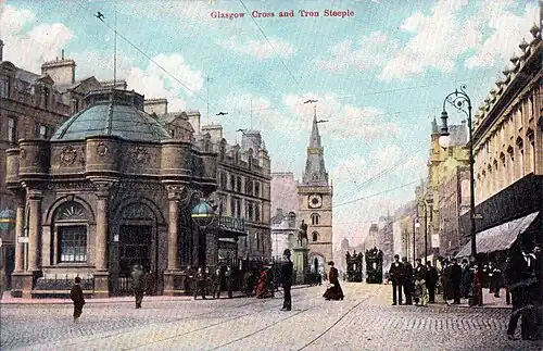 ![]() Glasgow Cross looking west along Trongate in the 1900s | |