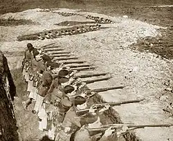 During the Great War of 1914–18 another two home-based battalions were recruited, which were used to supply manpower to the 1st Battalion in France, who served with distinction with the Highland Light Infantry under the 2nd Division at the battles of Festubert and Loos. In May 1916 the battalion was transferred to the 33rd Division[11] and fought at the Somme (at High Wood), Arras and the Third Battle of Ypres. After the end of the war, the Glasgow Highlanders were disbanded along with the rest of the Territorial Force. The story of the battalion in the Great War would later be dramatised in the 1995 Bill Bryden play, The Big Picnic, starring Jimmy Logan.[12]