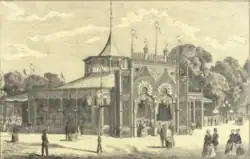 A concert hall was among the attractions when Tivoli Gardens first opened its doors in 1843. It was a rectangular, wooden building designed by Harald Conrad Stilling.[1]