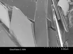 Glass flakes are extremely thin glass plates with an average thickness of 5 ± 2 micrometers.[1]