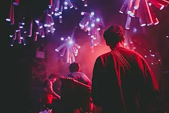 In July 2013, Glasslands announced that they had upgraded to a Danley Labs Inc. sound system.[28] Under PopGun's leadership, the venue took on more late-night parties with a DJ focus. These included select dates with DJ Jonathan Toubin as well as a monthly residency with the neo-disco and house collective Discovery. The themed Cat Face and Rebel Bingo nights found a home at Glasslands, as did the Brooklyn Electronic Music Festival. The Adventure[s] team also put on a number of notable parties including the season Robyn-themed party, an emo Valentine's dance, and a Twin Peaks-themed Halloween party.[29] Major electronic acts and DJs including Jon Hopkins, Baauer, Mister Saturday Night, Omar S., and Sophie (PC Music) all made memorable stops. Bands that made repeated stops during this period include Unknown Mortal Orchestra, How to Dress Well, Crocodiles, Empress Of, Cecile Believe (then Mozart's Sister), Lower Dens, Dum Dum Girls, Le1f, Torres (musician), The Range, DIIV, Trust, Shigeto, MØ, Hooray for Earth, Zambri, The Yellow Dogs, King Krule, Light Asylum, THEESatisfaction, Cloud Nothings, Anamanaguchi, Kelela, Mon Khmer, Air Waves, Majical Cloudz, Peelander-Z, Slow Magic, Mykki Blanco and Chrome Sparks.[22]