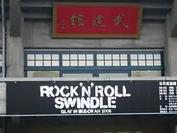 The front of the Nippon Budokan in 2006, advertising Glay's Rock 'n' Roll Swindle concerts