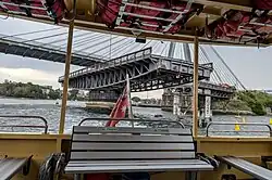The contractor for construction was H. McKenzie and Sons and the bridge was opened on 1 July 1903 by Miss Lily See, daughter of Premier, Sir John See.[1][7][8] It was opened the year after the opening of the new Pyrmont Bridge over Darling Harbour, which has a similar design. The bridge was designed by Percy Allan of the New South Wales Public Works Department who also designed the Pyrmont Bridge. During normal operation the two 29.1-metre (95 ft) swing spans rotated about a central vertical axis.