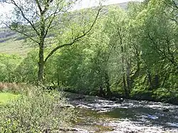 Glen Douglas (Scottish Gaelic: Gleann Dùghlais) is a glen in the southwest Scottish Highlands. It is drained by the Douglas Water, which discharges at the village of Inverbeg at its eastern end into Loch Lomond. The glen is followed by a single-track road which links the A82 road alongside Loch Lomond with the A814 road beside Loch Long. The glen is overlooked to the north by Beinn Bhreac (681 m or 2,234 ft) and Tullich Hill (632 m or 2,073 ft) and to the south by Doune Hill (734 m or 2,408 ft) and a 655 m (2,149 ft) hill known as Coire na h-Eanachan.[1]