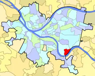 Glen Hazel is a neighborhood in Pittsburgh, Pennsylvania's east city area. It has both zip codes of 15207 and 15217. It is represented on the Pittsburgh City Council by Barb Warwick. The neighborhood is located on a hilltop along the Monongahela River and primarily consists of a public housing development of the same name, along with a county-owned nursing home.[2][3]