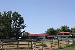 The 1950s saw a further 2 acre purchase of land to enlarge the showgrounds and also the installation of a Ringside Broadcast Box, horse and cattle stalls and further plantings. By this time the suite of buildings that now characterises the Glen Innes Showground were in place. The exception was the 1991 bar and barbeque, designed to complement the neighbouring grandstand, and the new entrance gates on Bourke Street. The 1960s and 1970s saw the continued care and interest in tree planting in the grounds, the establishment of the Industrial pavilion in 1974 and then in the 2000s the Men's Shed was erected near the Torrington St entrance.[1]