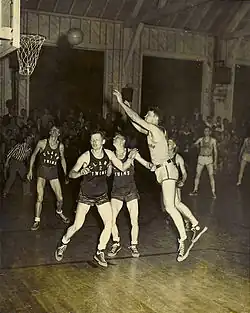 Glenn Roberts' Pound, Virginia high school did not field a basketball team his first two high school years. Roberts’ team won the state championship his junior and senior years (1930 & 31). The team record for 1930 was 28 wins and 2 losses with 1931 being 35 wins and 0 losses. Roberts was designated captain of the All-State team both years. Roberts played varsity ball 4 years (1931–35) at Emory & Henry College scoring 2,013 points in 104 games for a per game average of 19.4 points in an era when team scores were seldom over 30 or 35 points per game. His scoring was a new record for that time and still stands for play prior to the 1937 revision of the center-jump rule which called for walking the ball back to the center-line after every basket made and with the clock still running. (It's been estimated that this used up 8 to 10 minutes per game.) Roberts scored 1,531 points against college opposition in 80 games and 482 points against pro and semi-pro teams in 24 games. Emory and Henry's overall team record was 90 wins and 14 losses. His scoring total and per-game average was featured in Ripleys’ "Believe it or Not" in 1936.