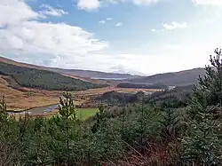 Many tributaries of the Brittle run down from these mountains into the glen, including a stream with waterfalls known as the much-visited Fairy Pools. Because of its location by the peaks, the area is popular with hikers and mountain bikers. A single road runs through the glen on the east side of the river. On the slopes on the west side there are large sections of forest maintained by Forestry and Land Scotland. There are two hamlets in the south of the glen - Glenbrittle and Bualintur. Near the mouth of the River Brittle is the Glenbrittle Campsite and grocery shop near a sandy beach. The 1930s youth hostel, operated by Hostelling Scotland,[3] is by the Allt a' Choire Ghreadaidh (a Brittle tributary) just north of Glenbrittle hamlet.