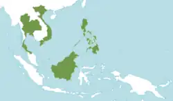 The species is found in Thailand, Vietnam, the Malay Peninsula, the Philippines and Borneo. It occurs in mixed hill forest at an elevation of 300โ800 m.[1]