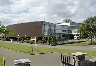 The building opened in 1966 with the intention of accommodating all of the pupils of the town who were seeking to do "Higher" level examinations. Prior to this older pupils living in Glenrothes had to attend schools in neighbouring towns to continue their highers as the earlier secondary schools in the new town, Glenwood and Auchmuty, only provided for pupils at a junior secondary level.[3] This system operated successfully for a number of years, however changes in the education system at the National level in the 1970s made the system redundant and both Auchmuty and Glenwood were raised to full "high school" status.[4][5]