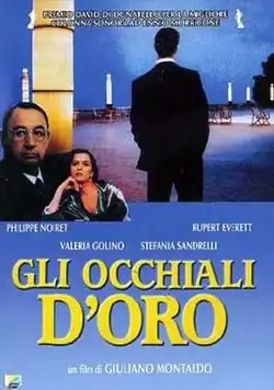 Gli occhiali d'oro (internationally released as The Gold Rimmed Glasses) is a 1987 Italian drama film directed by Giuliano Montaldo, starring Philippe Noiret, Rupert Everett and Valeria Golino. Set in Ferrara and in a nearby seaside resort in 1938, the plot follows a Jewish student and a homosexual doctor who suffer persecution in Fascist Italy. The film is an adaptation of Giorgio Bassani's novel The Gold Rimmed Spectacles (Gli occhiali d'oro).[1]