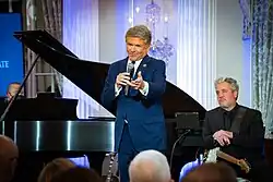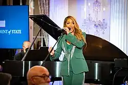 The event featured live performances from Jamie Barton, Gayle, Dave Grohl, Mickey Guyton, Herbie Hancock, Christopher Jackson, Ladama, Aimee Mann, Rakim, and Armani White, among others.[23] Blinken himself also performed "Hoochie Coochie Man" by Muddy Waters, the video of which went viral.[24][3][25] Quincy Jones, a former Jazz Ambassador, received the inaugural Peace Through Music Award.[4]