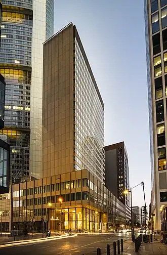 The Global Tower also known as the Commerzbank AG is a high-rise office building in the Innenstadt district of Frankfurt, Germany. Built between 1970 and 1973, the tower stands at 108.6 m (356 ft) tall with 29 floors and is the current 40th tallest building in Frankfurt.[2]