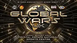 Global Wars UK is an annual professional wrestling supershow co-produced by the Japanese New Japan Pro-Wrestling (NJPW) and British Revolution Pro Wrestling (RPW) promotions. The two promotions established a partnership in July 2015 as part of NJPW's "New IWGP Conception."[1][2][3] All editions of the show have been archived on New Japan's NJPW World streaming service.