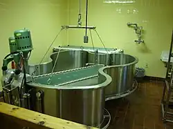 Other items include the "Bath of Surprise", a platform designed to quickly submerse the patient into a bath of ice water;[6][7] the "Giant Patient Treadmill," which would encourage agitated patients to remain still, lest they become exhausted by causing movement of the giant wheel; the "Lunatic Box", an upright, coffin-like box in which patients who were deemed uncontrollable were confined until they calmed down;[2] and the "O'Halloran's Swing", a hammock-like device used to calm an agitated patient or induce sleep.[6][2]