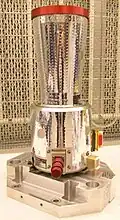 The Cloud Camera Sensor Package is a dual-band (blue and near infrared), visible imager utilizing non-scanning detector arrays that are analogous to star trackers but Earth-viewing. It consists of an optical imaging system that provides continuous cross-track coverage over a field of view centered on the APS along-track footprint.[5] |
