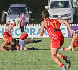 • Studs-up: to fly for a mark in such a way that the studs may cause injury to another player. If this is deemed a deliberate action a free kick penalty may be applied.