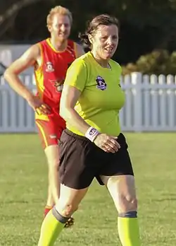 • Boundary umpire: an official who patrols the boundary line, indicating when the ball has fully crossed that line, and who may then execute a boundary throw-in to return the ball to play. There are typically two of these umpires per game, one on each side of the oval, but there will be four in top grade games.[3]