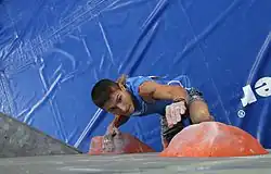 Moving off for the second hold without being established on the start holds, thus using the floor as a foothold. In most competition climbing, including IFSC events, starting a climb in this manner invalidates the attempt.[48]