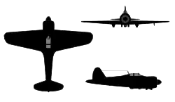 The new aircraft, now informally referred to as the Unnamed Fighter, featured many of the trademark Gloster design elements including the tail and close-fitting cowling that resembled the earlier Gauntlet and Gladiator biplane fighters.[2] The low-wing cantilever mainplane was built in one piece with light-alloy spars running through from tip to tip and ribs made from channelling with steel and light-alloy tube struts. NACA 2218 profiles were used at the root and NACA 2209 at the tip. The single-piece wing was later criticised as it would have prevented battle damage from being repaired by replacing a single wing.[3] Duralumin metal for the stressed skin construction was used on the mainplane and tail unit with fabric-covered Frise ailerons. The fuselage was a monocoque structure built up from light, fabricated oval-section rings with duralumin skinning.[5]