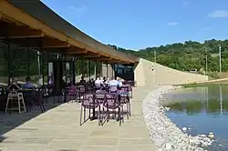 One of the factors that helped the development gain planning permission was the inclusion of a green roof in the design. The 4,000 m2 (43,000 square feet) green roof was designed to disguise the new service station as part of the landscape. With the Cotswolds on one side and Robinswood Hill on the other, every effort had to be made to reduce the aesthetic and biological impact the project had. A bespoke seed mix was used which was intended to mimic the natural vegetation of the surrounding landscape. Species such as birdsfoot trefoil and yellow rattle were included to attract UK native pollinators such as bees and butterflies.[15][16]