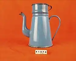 Glud and Marstrand produced a wide range of metal products for households, inclyding kitchenware, buckets and toys. After the turn of the century, Glud and Marstrand launched their blue enamel kitchenware. Their coffee pot was marketed under the name Madam Blue (Madame Blue). In the 1930s. Glud / Marstrand also launched a production of red and orange enamel products. The production of Madam Blue was discontinued in 1966.