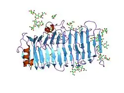 - ^ Huang JH, Schell MA (July 1990). "DNA sequence analysis of pglA and mechanism of export of its polygalacturonase product from Pseudomonas solanacearum". Journal of Bacteriology. 172 (7): 3879–87. doi:10.1128/jb.172.7.3879-3887.1990. PMC 213369. PMID 2193922.