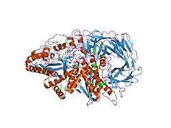 Glycoside hydrolases EC 3.2.1. are a widespread group of enzymes that hydrolyse the glycosidic bond between two or more carbohydrates, or between a carbohydrate and a non-carbohydrate moiety. A classification system for glycoside hydrolases, based on sequence similarity, has led to the definition of >100 different families.[1][2][3] This classification is available on the CAZy web site,[4][5] and also discussed at CAZypedia, an online encyclopedia of carbohydrate active enzymes.[6][7]