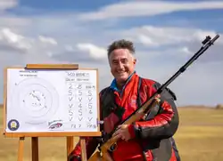 His first Commonwealth Games representing England came in 1994, in Victoria, British Columbia. He won a bronze medal in the fullbore rifle singles and a silver medal in the pairs.[4][5][6] At the Manchester Commonwealth Games in 2002, he won a bronze medal in the pairs, shooting with Jane Messer.[2][4][7] He won HM the Queen's Prize in 2002 and again in 2003,[2] becoming the first person to win the prize in consecutive years.[8] This feat was equalled by David Calvert in 2015/2016.