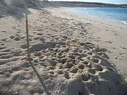 The Gnaraloo Turtle Conservation Program (GTCP) is an environmental organisation based at the Gnaraloo pastoral station and run by the Gnaraloo Wilderness Foundation, a not-for-profit organisation. The aim of the GTCP is to identify, monitor and protect the nesting beaches of loggerhead sea turtles (Caretta caretta) found at two locations on the Gnaraloo coastline.[1][2] These two rookeries contribute to the South-East Indian Ocean subpopulation of loggerhead turtles, with other major nesting sites for this sub-population at Dirk Hartog island (within Shark Bay) and Exmouth.[3] This is within the southern boundaries of the Ningaloo Coast marine area, a UNESCO World Heritage Site.[4]