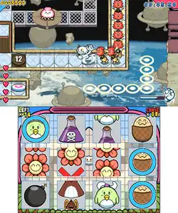 Once enemies are fed to the plant, they are digested and appear on the lower screen, where the player can use the touch pad to tap them for bonuses. This premise is repeated throughout the game's main stages, but many obstacles such as switches, traps and puzzles add to the variety to keep the player on their toes.