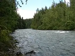 The Goat River is a tributary of the Fraser River in British Columbia, Canada. Starting in the northern reaches of the Cariboo Mountains, it flows eastward and northeastward to join the Fraser near the settlement of Crescent Spur in the Robson Valley. Including its main tributary, the Milk River, its watershed covers 66,468 hectares (164,250 acres). Other major tributaries for the river include McLeod, North Star, Whitehorse, Quartz, Diggings and Kendall creeks.[1]