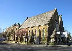 The church was responsible for founding or taking charge of several other Congregational mission chapels in the surrounding villages. One was founded at Elstead in October 1834, when members of Ebenezer Chapel left to establish a formal church there[9] (Congregational services had taken place informally in the village since 1821, when a chapel was erected to provide a venue for services which had previously been held outdoors in nearby Tilford). A new chapel was built in 1845. After a period of being looked after by Farnham Congregational Church, Godalming took charge again from 1890.[10] It remains in use as a United Reformed church.[11] In 1870 Godalming Congregational Church took responsibility for the chapel at Wormley, a hamlet near Witley. The first chapel was originally Independent in character and was built in 1836. The site, which had been leased, was purchased in 1866 and a new chapel was built two years later for £250, after which it became another "out-station" of Godalming. It closed in the 20th century and is now part of the adjacent King Edward's School.[10][12] At Milford, a Congregational church which began with house meetings in 1856 moved to a shed-like wooden chapel in 1860 and then a secondhand tin tabernacle in 1872. At that point it was taken over by Godalming Congregational Church and became another out-station. A "handsome chapel of Bargate stone" was erected in 1902. This closed in the late 20th century and was sold to a Baptist congregation, and is now known as Milford Baptist Church.[12][13]