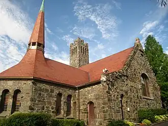 Goddard Chapel, built in 1883, is the main religious building at Tufts University in Medford, Massachusetts. The historic chapel was built in the Lombard Romanesque style.