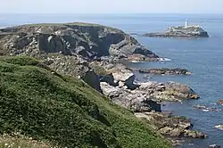 Godrevy Island lies approx three hundred yards off Godrevy Point. The uninhabited island is the site of Godrevy Lighthouse, operated by Trinity House. The island covers an area of 12 acres (4.9 ha) and is home to seagulls, oystercatchers and pipits. Its vegetation is dominated by grasses, with primroses and sea thrift flowering in the spring. Landings may only be made on the island with the permission of Trinity House.[5]