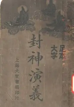 Gods and demons fiction or Shenmo fiction (traditional Chinese: 神魔小說; simplified Chinese: 神魔小说; pinyin: shénmó xiǎoshuō) is a subgenre of Chinese fantasy fiction that revolves around the deities, immortals, demons and monsters of Chinese mythology. The term shenmo xiaoshuo, coined in the early 20th century by the writer and literary historian Lu Xun, literally means "gods and demons novel".[1] Representative works of shenmo fiction include the novels Journey to the West and Investiture of the Gods.[2]