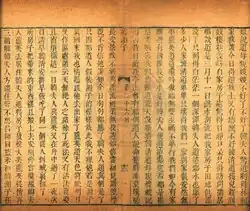 The Three Sui Quash the Demons' Revolt (三遂平妖傳, c. 14th century CE) is an early gods and demons novel attributed to Luo Guanzhong.[5] In the story, Wang Ze begins a rebellion against the government with the aid of magic.[6] The Four Journeys (四遊記, c. 16th century CE) is another early shenmo work composed of four novels and published during the dynasty as a compilation of folk stories.[7] The Story of Han Xiangzi (韓湘子全傳, c. 17th century CE), a Daoist novel from the same period, also shares this supernatural theme but contains heavier religious overtones.[8]