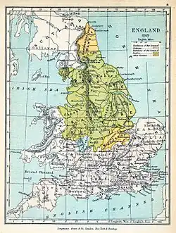 England in 1065; Earldoms in Godwin's immediate house are those east of Dehaubarth and Gwent shaded white