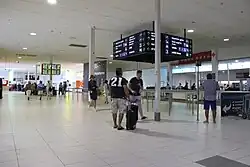 The following airlines operate scheduled and in some cases chartered passenger flights from Gold Coast Airport. All passenger airlines operate flights from the main terminal (T1) with the exception of Seair Pacific, which operates from their own hangar in the general aviation part of the airport and Eastern Air Services which operates from the General Aviation apron.[31][32]