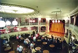 The Golden Horseshoe Saloon (referred to as Pecos Bill's Golden Horseshoe Saloon during construction) is a restaurant and attraction at Disneyland Park in Anaheim, California in the United States. It opened in 1955 with several other original attractions at Disneyland Park. Over the years the venue has housed multiple stage shows. The "saloon" is located in Frontierland and has views of the Rivers of America and New Orleans Square.