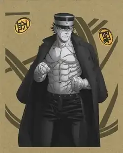 Sugimoto introduces himself to the large Japanese man from the Stenka audience, Maiharu Gansoku, but they speak no further. Through the tavern owner, the Japanese group is asked to throw the fight to have their dog returned, but they angrily decline. Their main opponent at the second Stenka is their target, the tattooed prisoner Gansoku. The bout begins with Sugimoto taking on Gansoku and ends with only Gansoku and the Japanese standing with Sugimoto punch drunk after suffering too many blows to the head. Suddenly, Sugimoto lands a mighty kick on Gansoku, causing a riot. He chases Gansoku into the woods with a hammer and sickle, but so do Koito, Tsukishima, and Tanigaki who find Gansoku being attacked by a wolverine. They all seek shelter in a hut which turns out to be a stiflingly hot banya.[c] Meanwhile, Cikapasi and Enonoka rescue their dog, but attract the attention of the wolverine. Sugimoto arrives to finish the fight with Gansoku, but with Tanigaki's help, Cikapasi shoots the wolverine. This activity causes the men all fall through the ice into the freezing water and they return to the banya with Sugimoto. The icy water returns Sugimoto to consciousness and they decide not to kill Gansoku, but instead copy his tattoos and suggest he seek refuge further into Russian territory. Epilogue: Asirpa is seen seal hunting with Kiroranke, Shiraishi and Ogata. | |||||||
