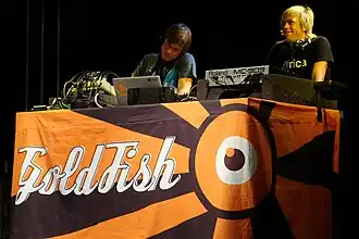 Dominic Peters and David Poole founded GoldFish in Cape Town, South Africa. The two jazz musicians had first met while studying music at college.[5] After the 2006 release of their debut album Caught in the Loop, the group went on to open for artists such as Fatboy Slim, Mr Scruff, Audio Bullys, Stereo MC's.[6] Basement Jaxx, Faithless, Paul van Dyk, and Pete Tong.[7] GoldFish was nominated for the Best Alternative category at the first MTV Africa Music Awards 2008 but did not win.[8]
