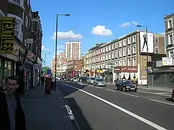 Goldhawk Road is a road in west London, England, which starts at Shepherd's Bush and travels west. There are numerous shops, restaurants and businesses lining the road, which forms the southern boundary of Shepherd's Bush Green. It is designated part of the A402 road.
