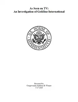 - ^ a b c d e Wiener, Anthony D. (May 17, 2010). "As Seen on TV: An Investigation of Goldline International" (PDF). United States House of Representatives. Archived from the original (PDF) on July 7, 2010. Retrieved May 19, 2010.