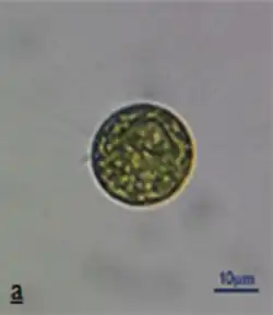 The precise taxonomic status of Golenkinia is somewhat unclear due to the large number of revisions it has undergone.[7] It has traditionally been classed with other round, spine-bearing green algae, many of which are now assigned to the class Trebouxiophyceae.[8]