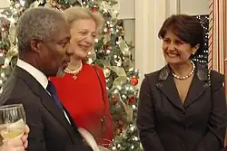 Goli Ameri (Persian: گلی عامری; née Yazdi; born September 26, 1956) is an Iranian-American businesswoman and former U.S. diplomat. She is the co-founder of StartItUp, a mobile technology platform that provides resources to aspiring entrepreneurs.[1] She formerly served as Under Secretary General for Humanitarian Values and Diplomacy for the International Federation of Red Cross and Red Crescent Societies and U.S. Assistant Secretary of State for Educational and Cultural Affairs. Ameri ran for the U.S. House of Representatives as a Republican in 2004, and is a former U.S. Representative to the United Nations. She serves on the board of trustees of Freedom House, as well as on the Center for Middle East Public Policy advisory board of the RAND Corporation, a group of public and private sector leaders that provide guidance and support for RAND's Middle East research.[2][3]